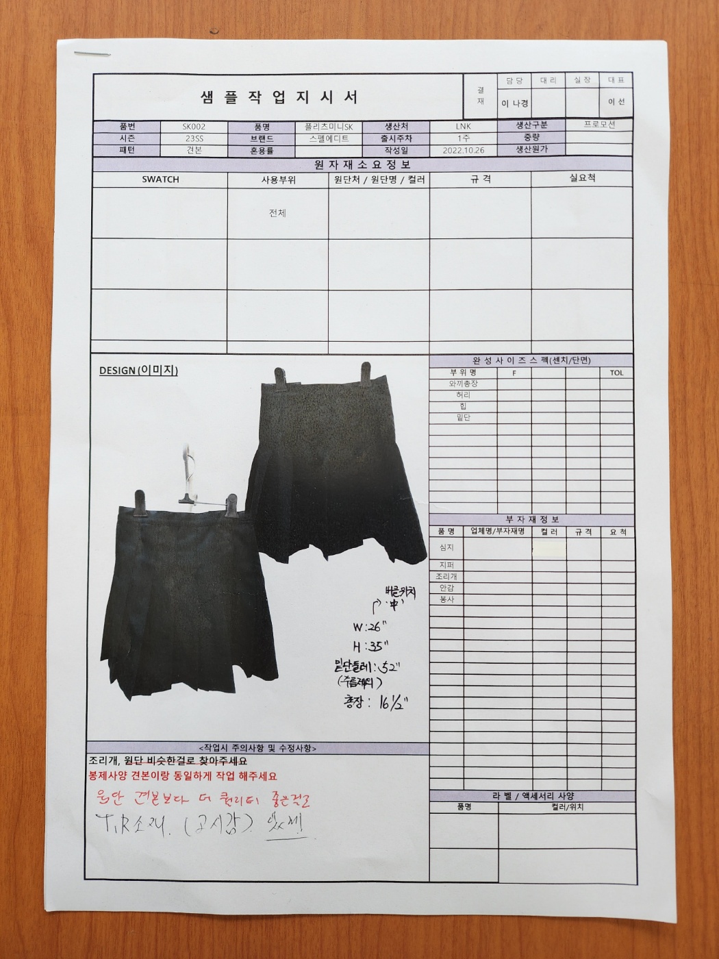디테일한 봉제 마무리까지 꼼꼼하게 생산 지시를 내려야 합니다.
