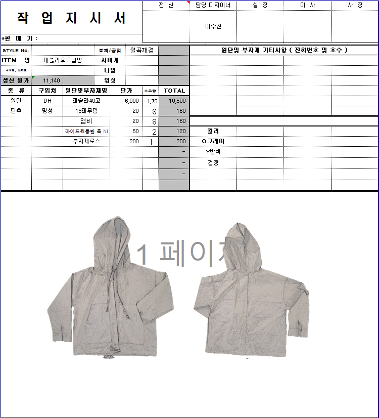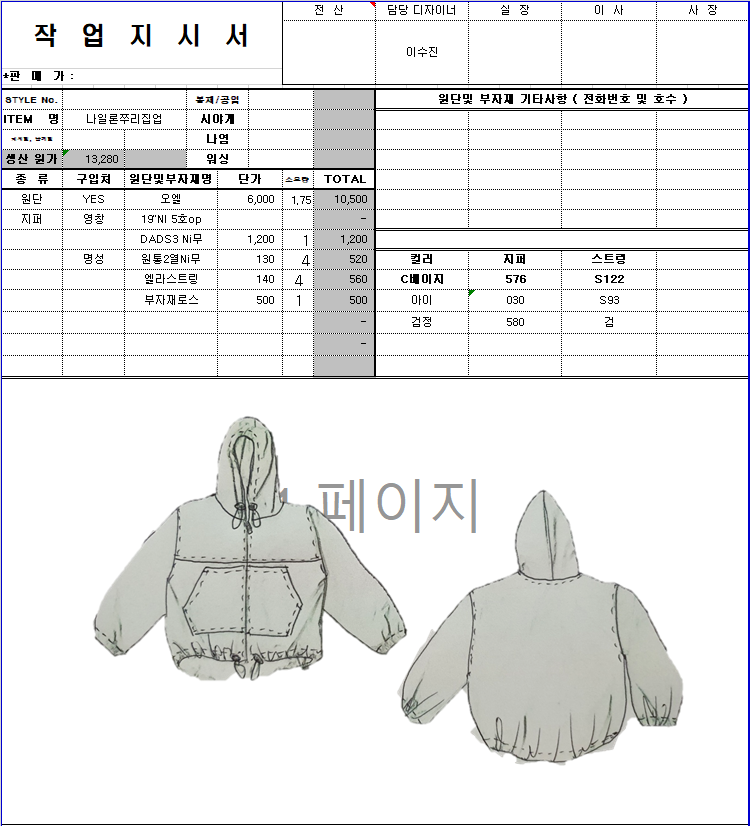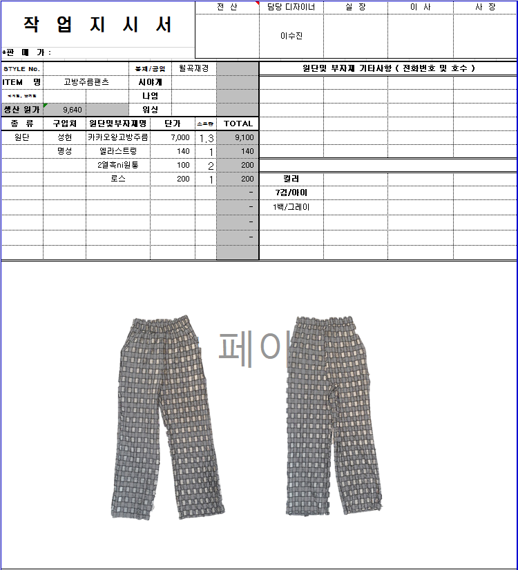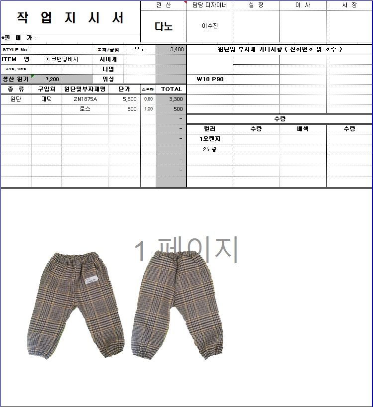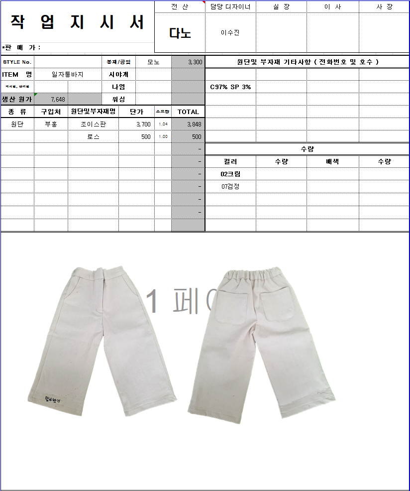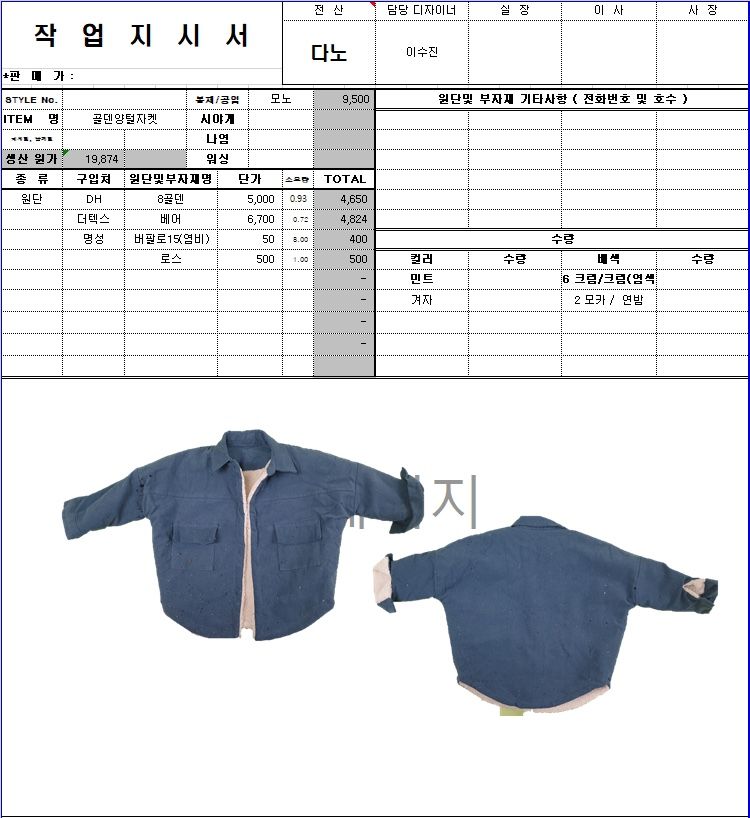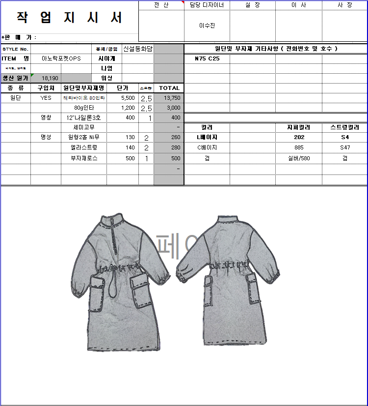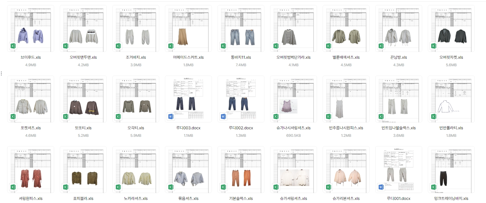 의류 생산 디자인 작업했던 지시서들 모음