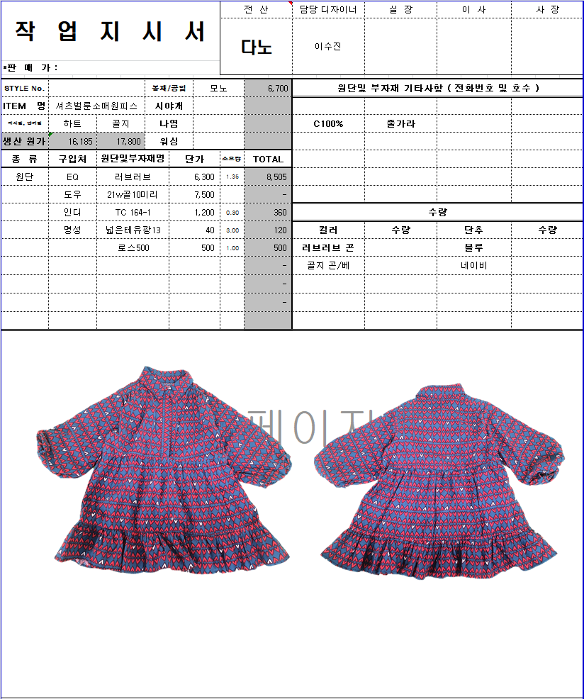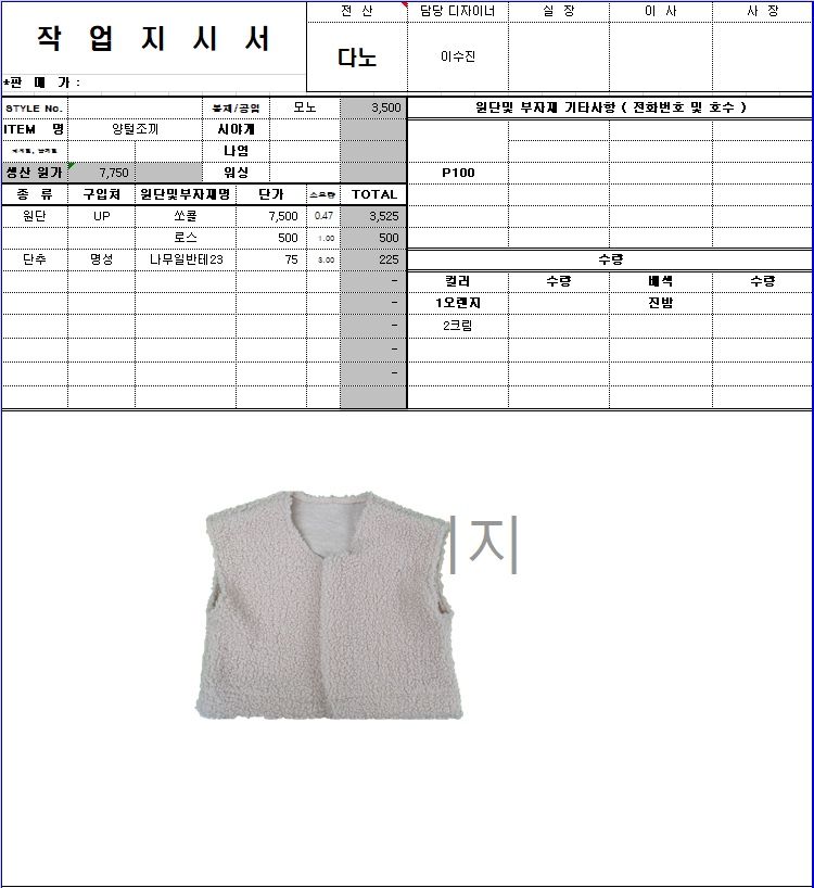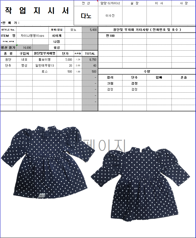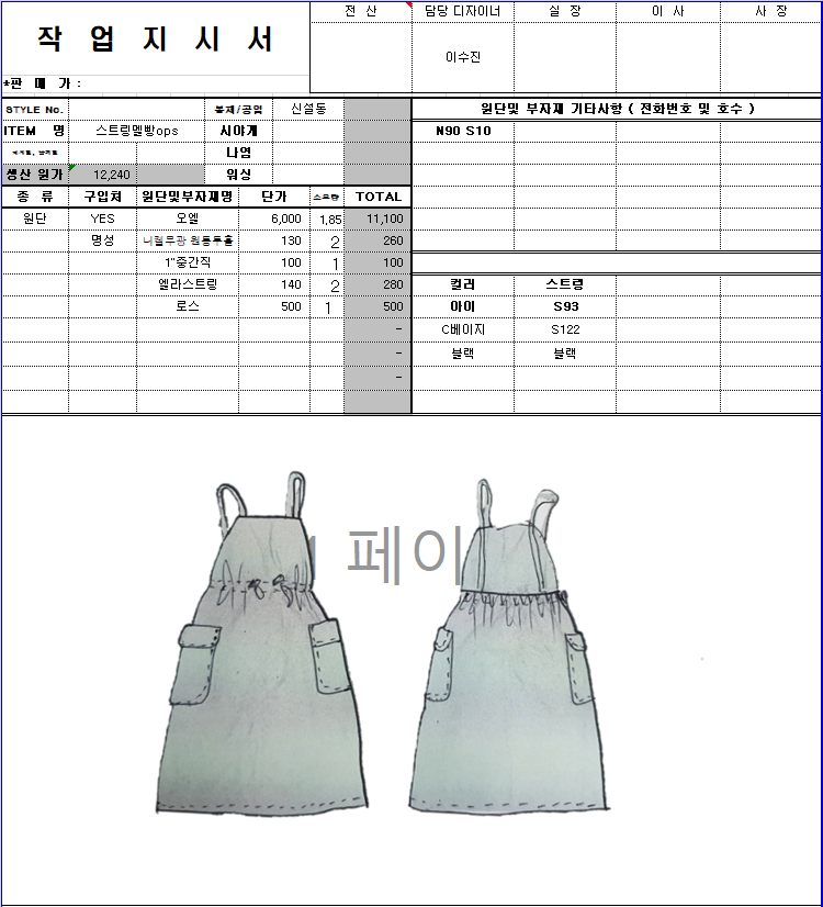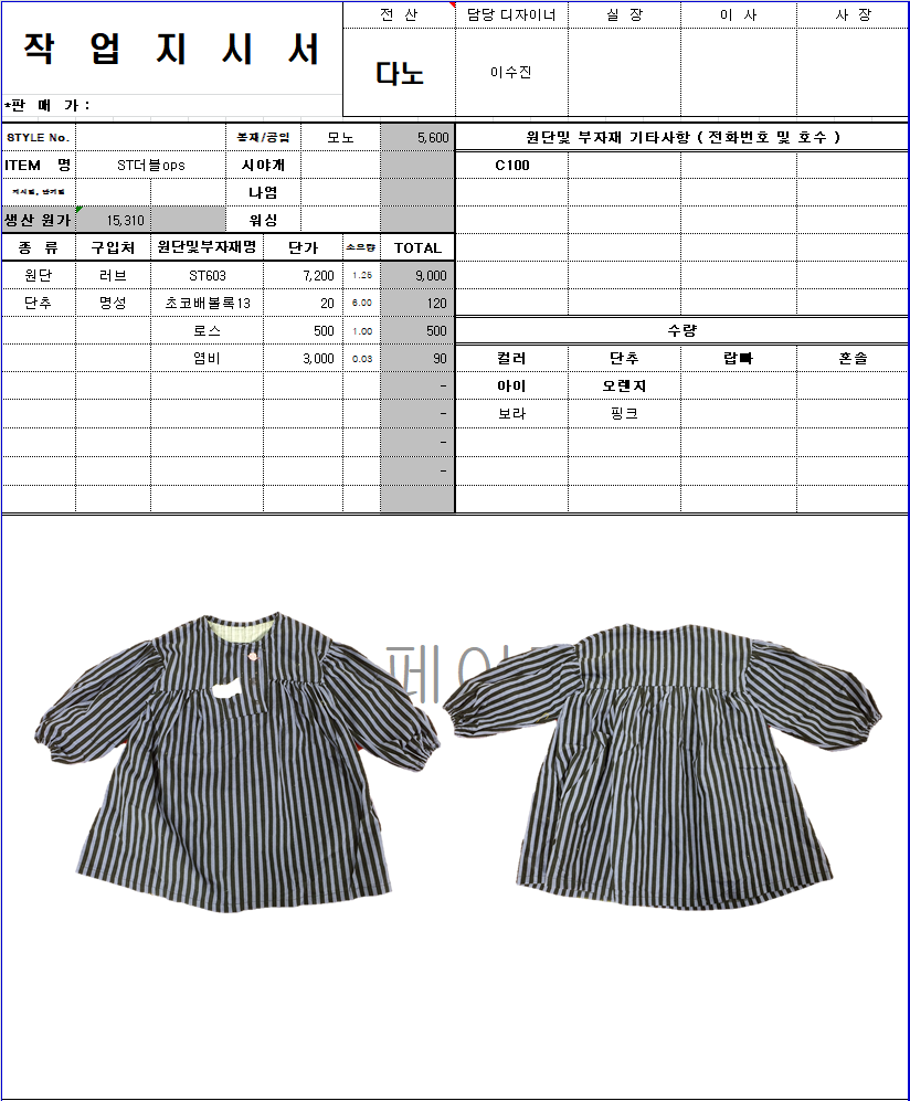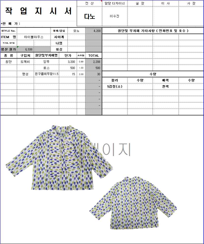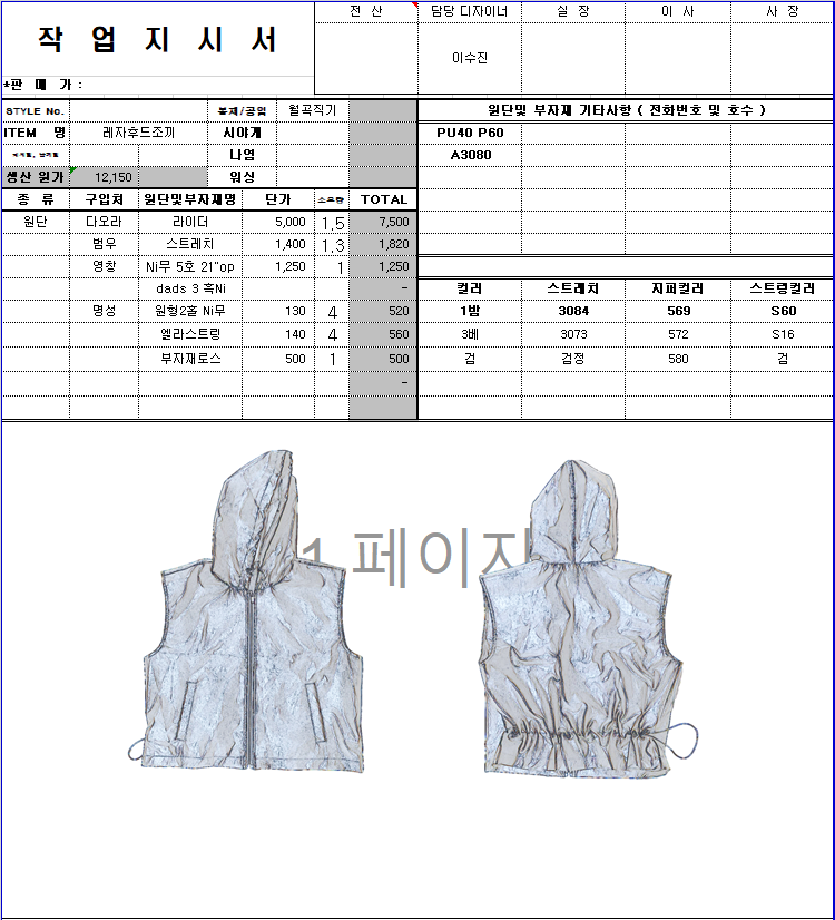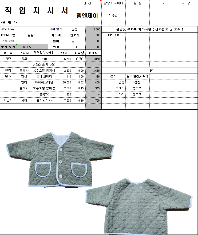 의류 생산 디자인 작업했던 지시서들 모음