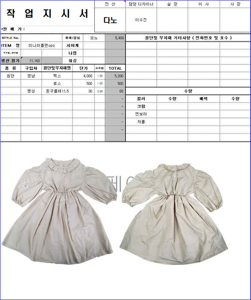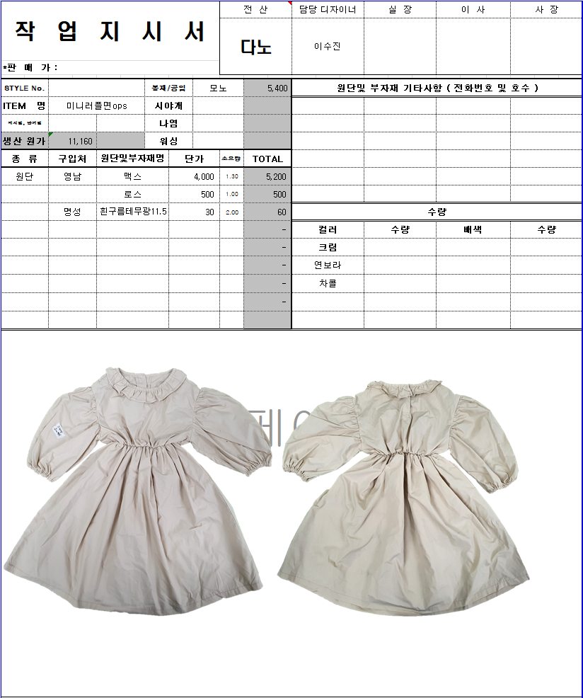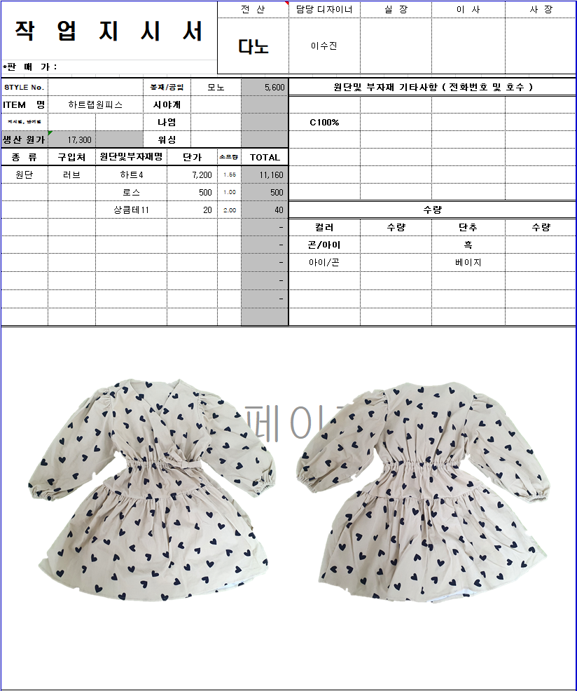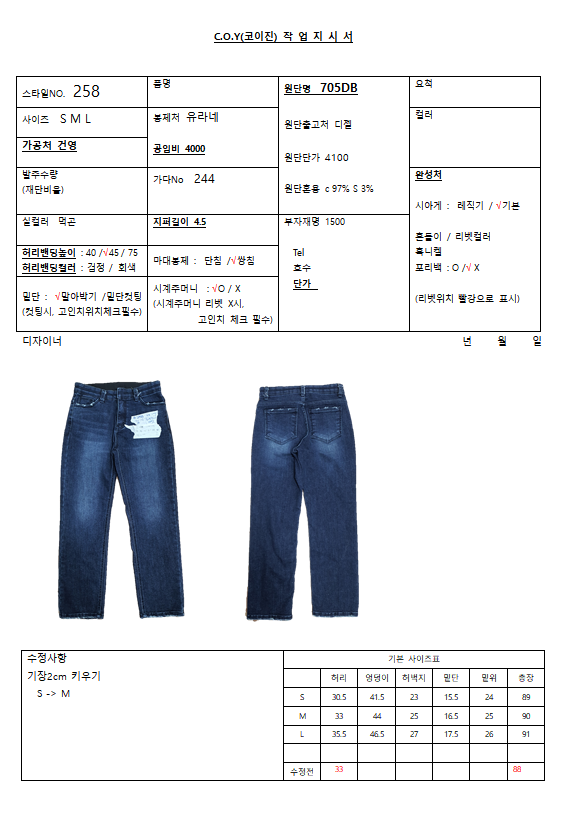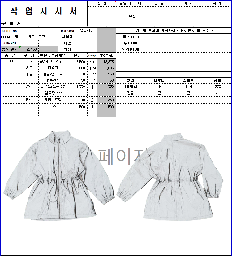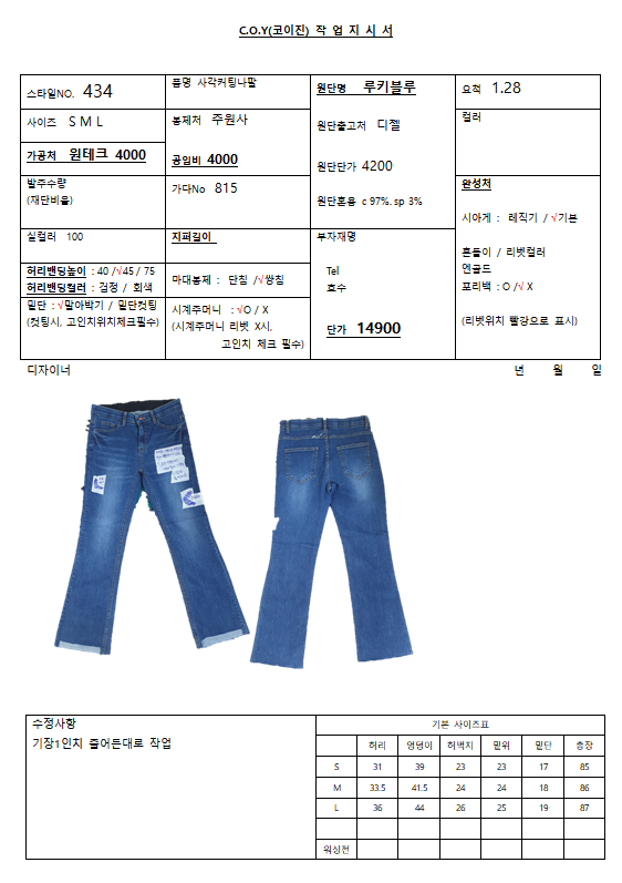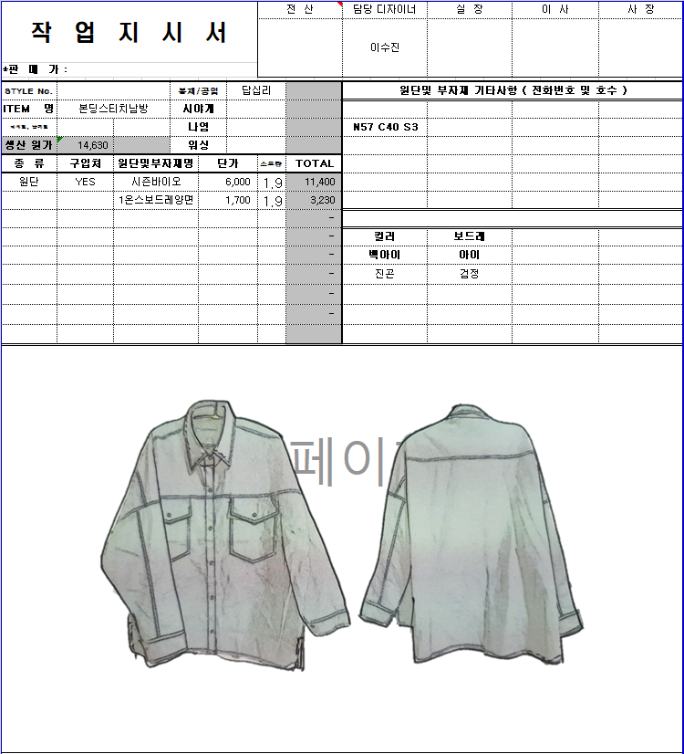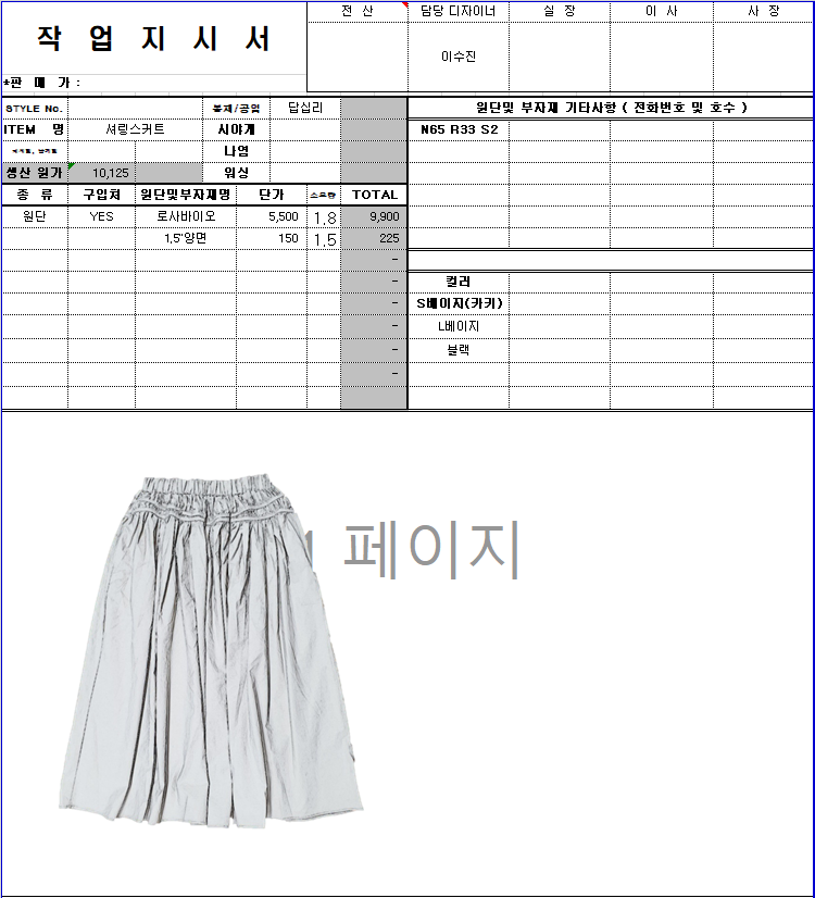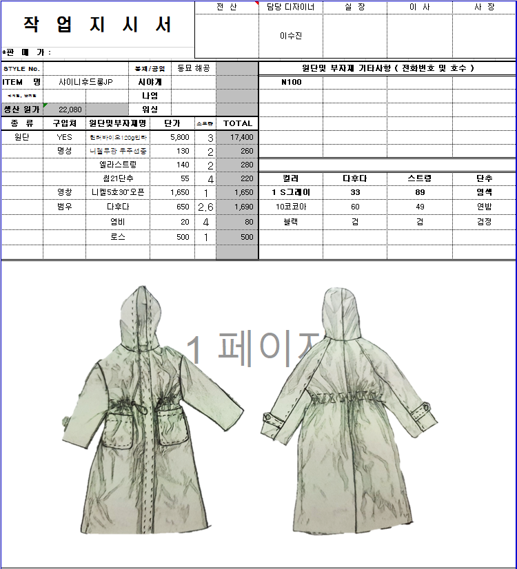 의류 생산 디자인 작업했던 지시서들 모음