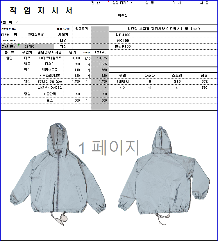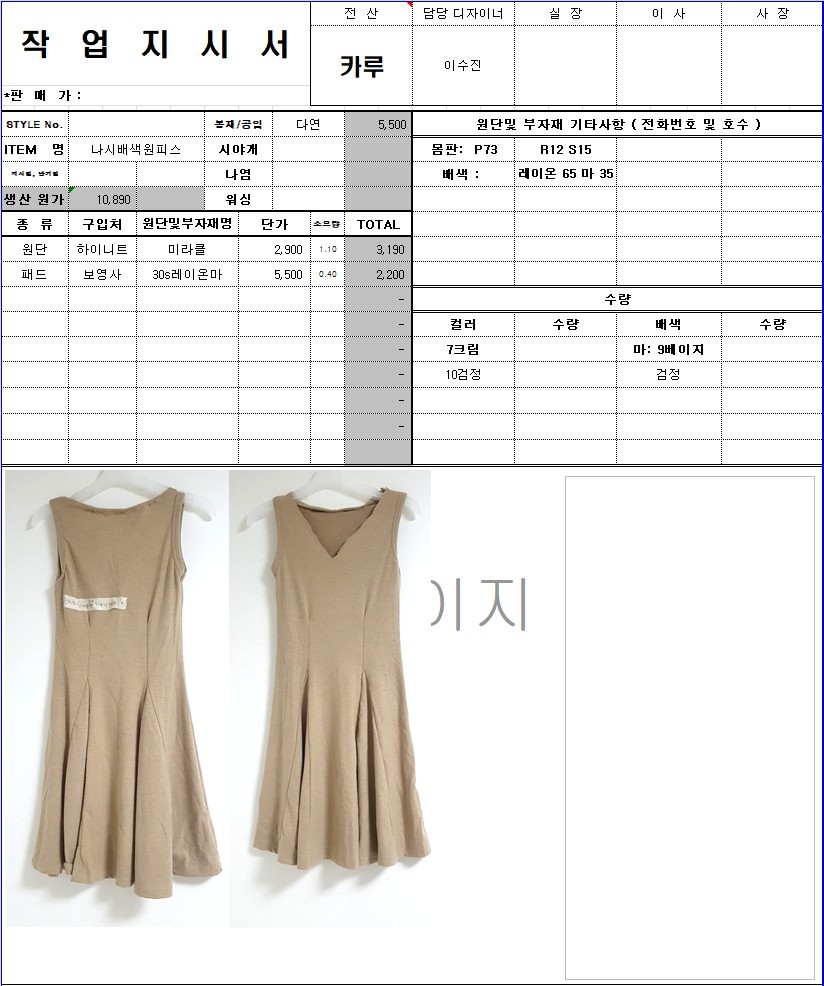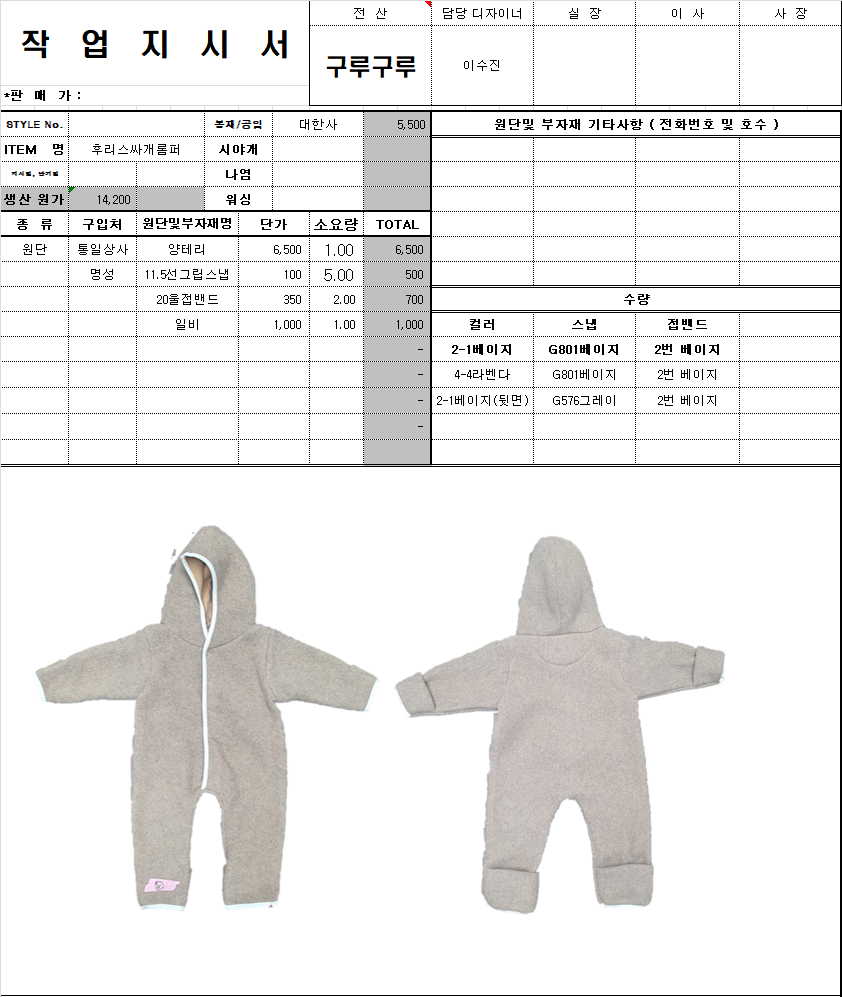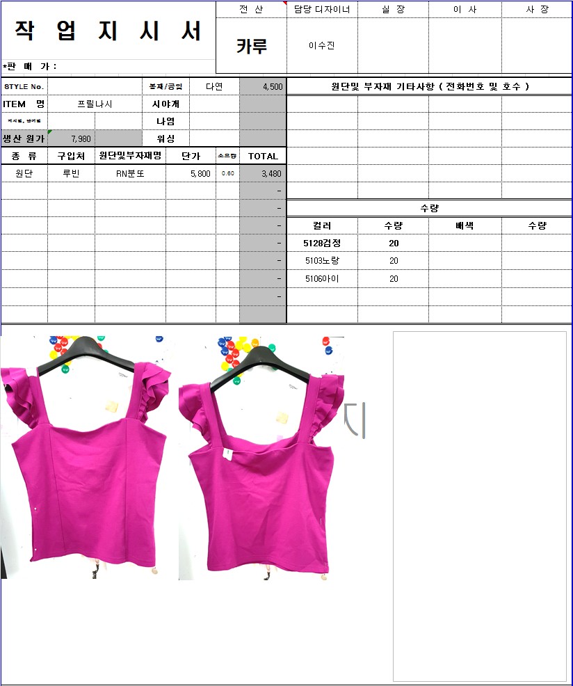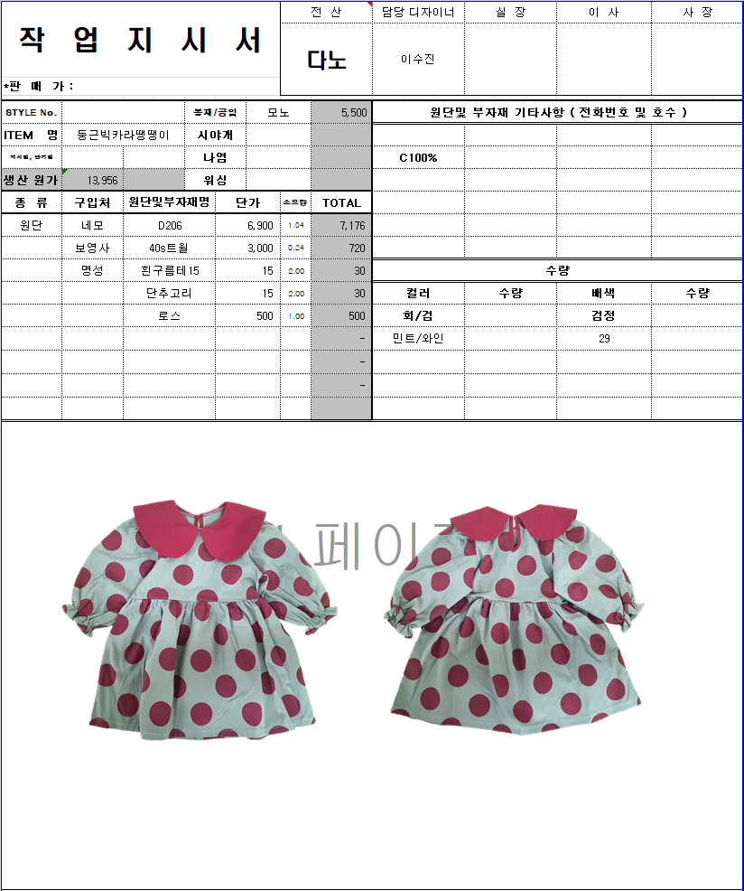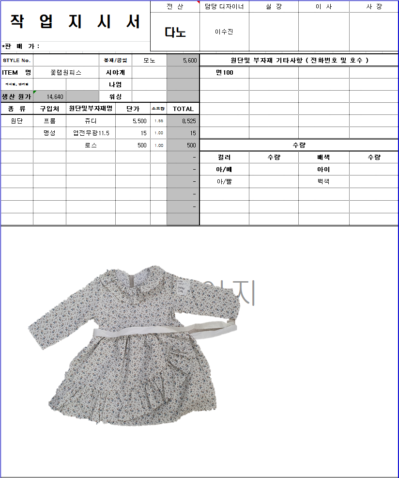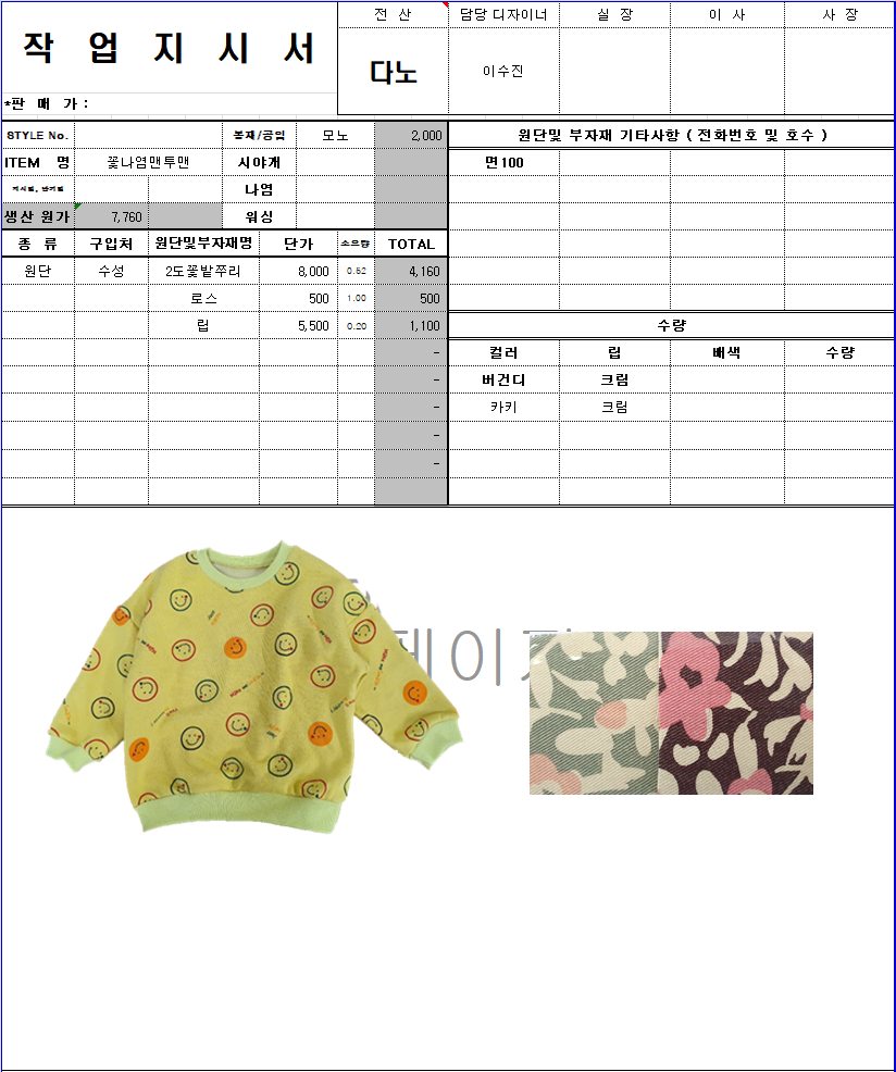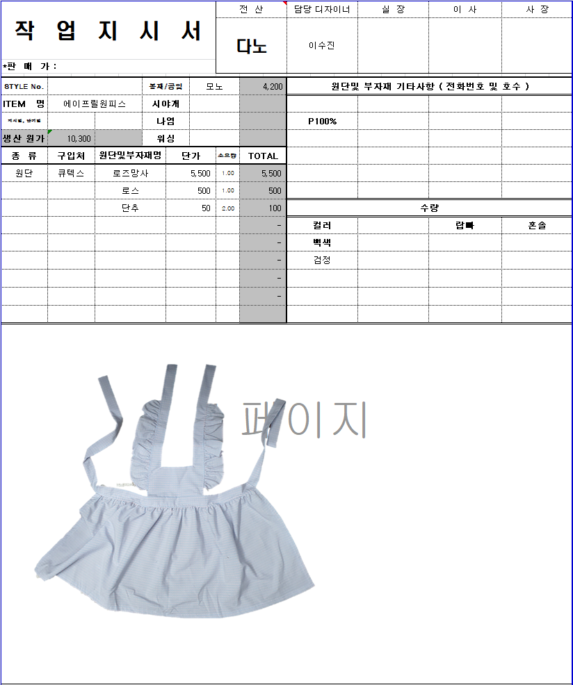 의류 생산 디자인 작업했던 지시서들 모음