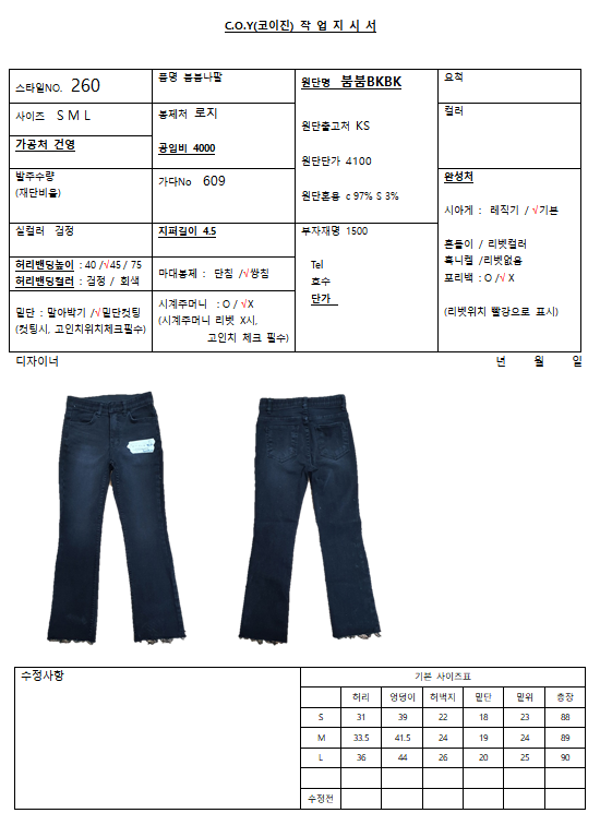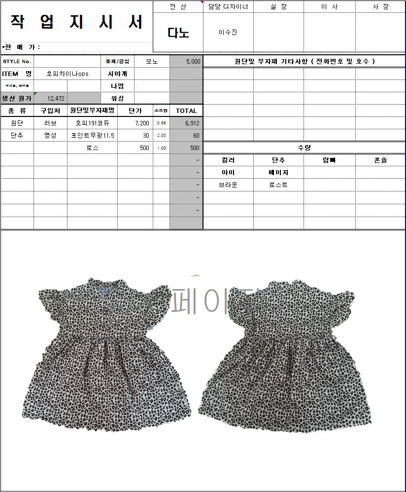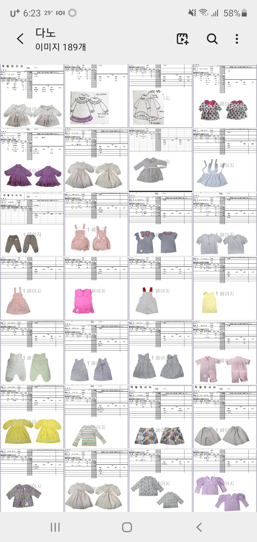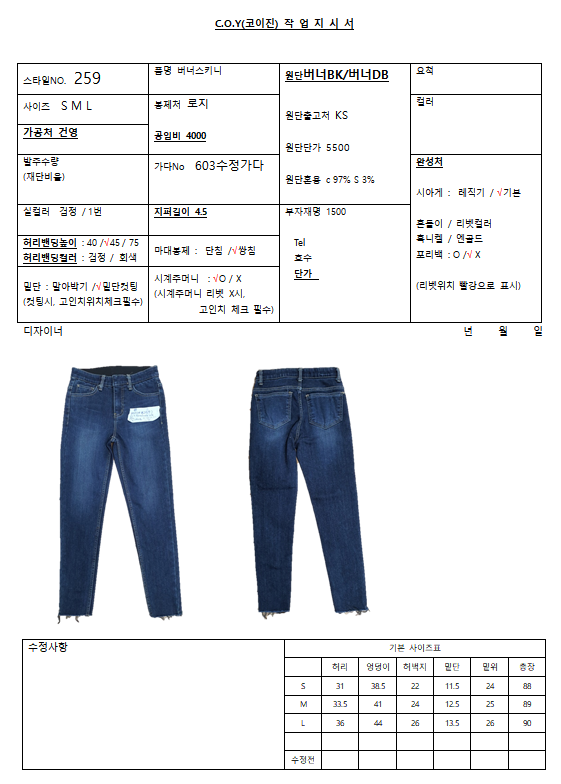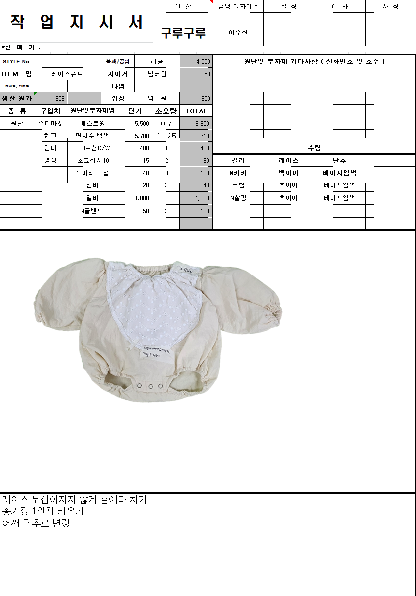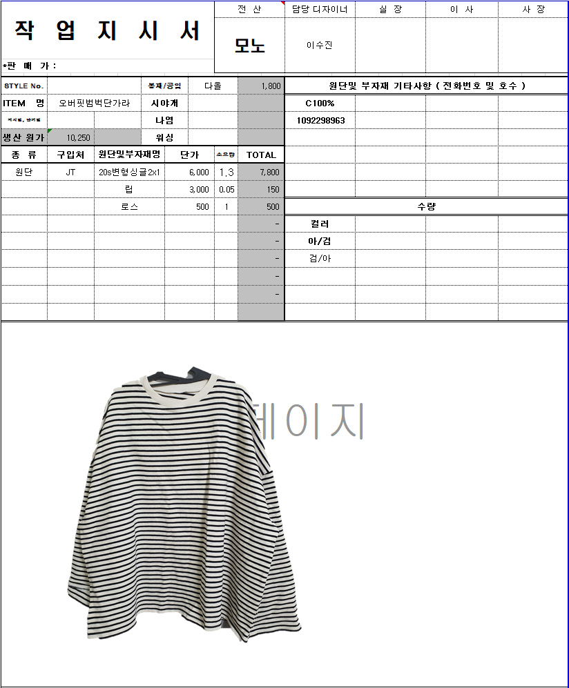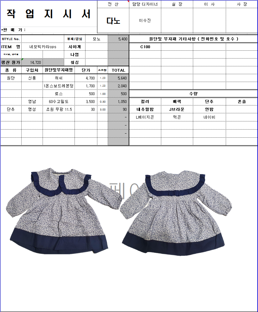 의류 생산 디자인 작업했던 지시서들 모음