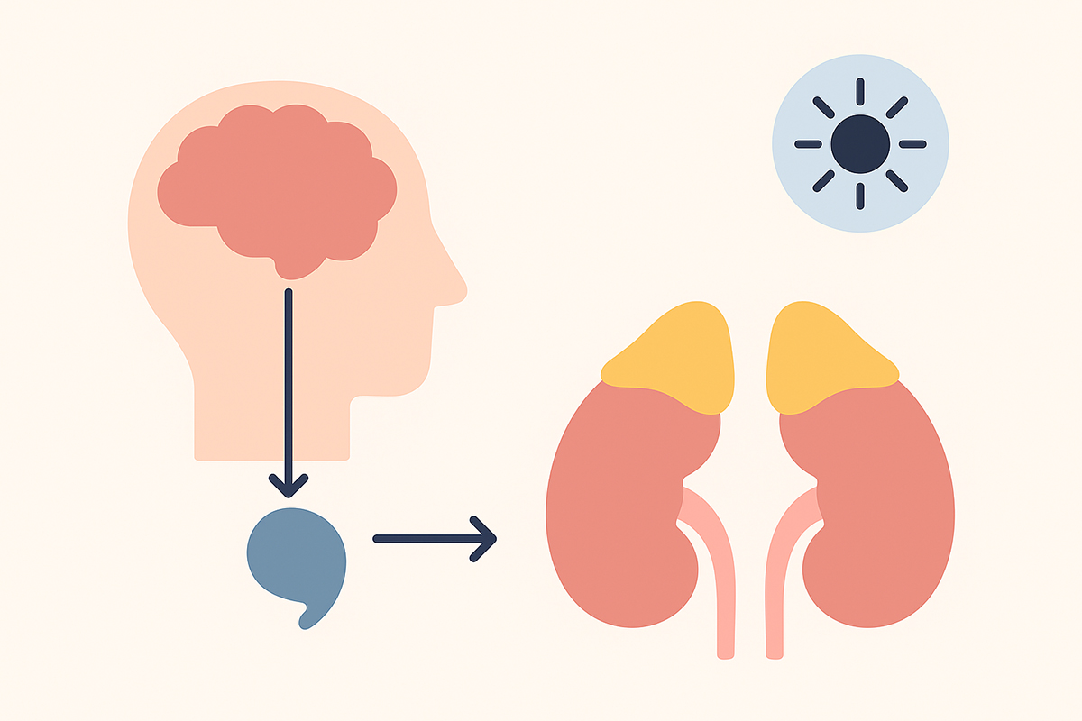이 시스템은 뇌의 시상하부–뇌하수체–부신 축(HPA axis) 을 통해 조절된다.즉, 부신은 “스트레스와 생존 반응의 컨트롤 타워” 역할을 한다.